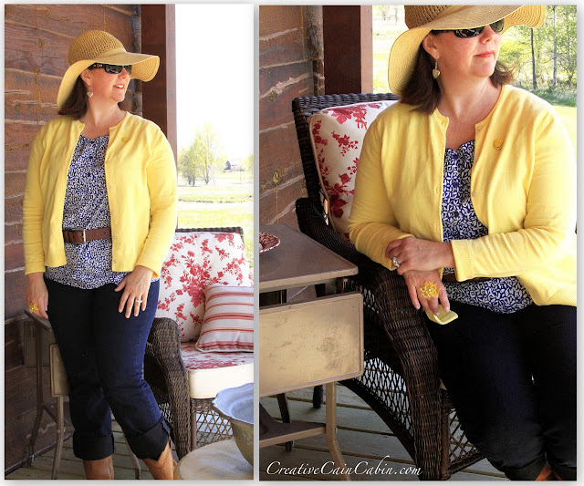 Loved the yellow and navy outfit with the brimmed yellow hat. You look great in a hat. I love hats but I don’t look great in them, I think my head is too small. Have a great week! Carolyn