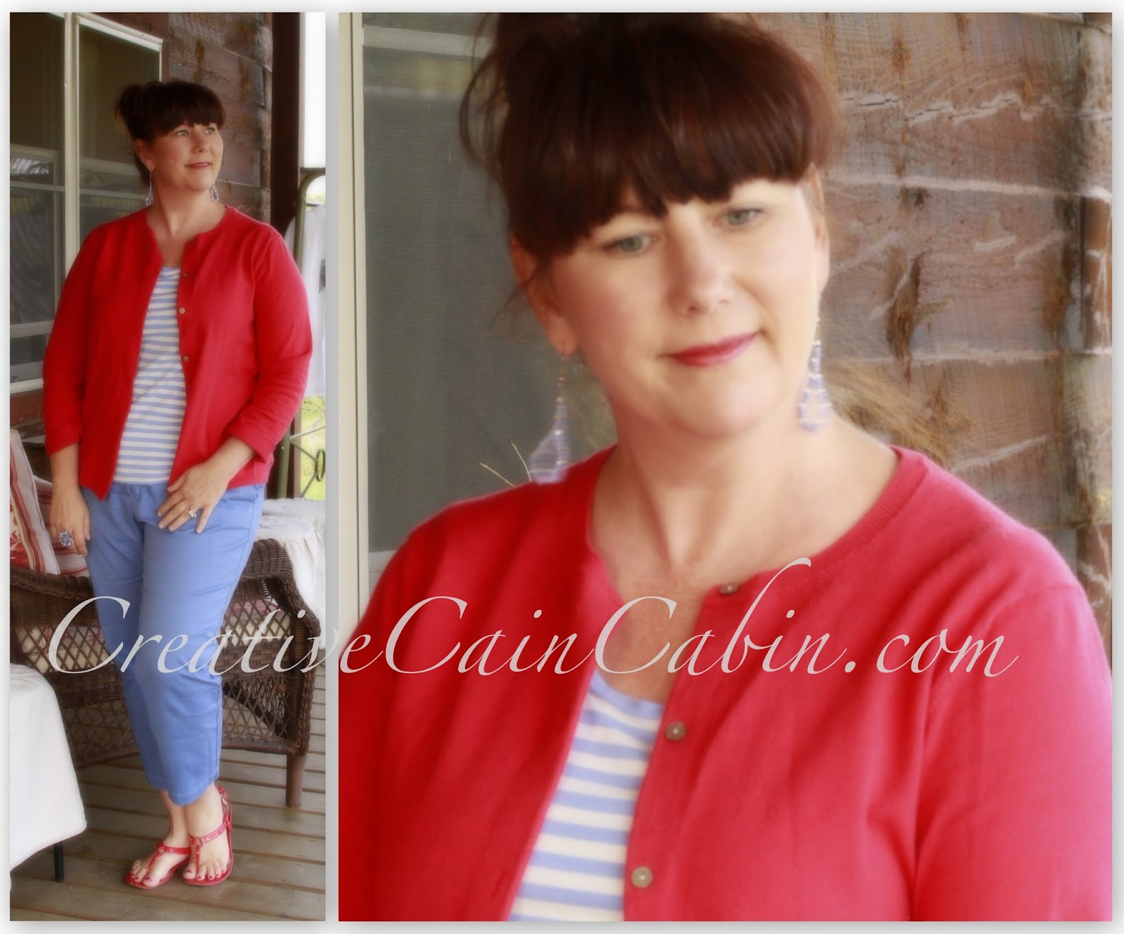 Adore the red cardigan. If you had photographed this today your toes would be freezing in those sandals. :o)
