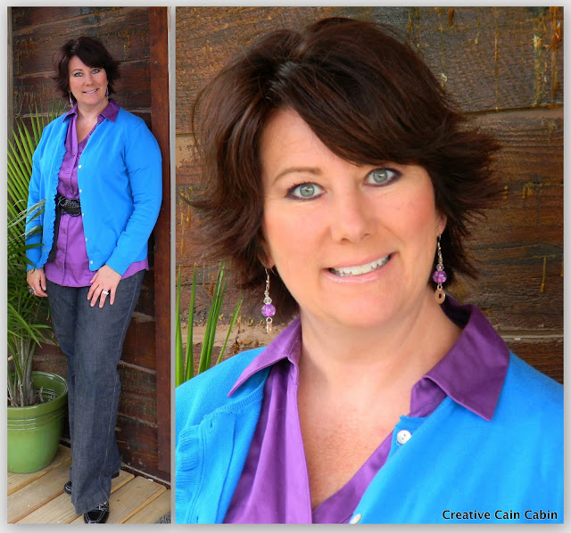 That purple blouse and blue cardigan is WOW on you. So pretty.