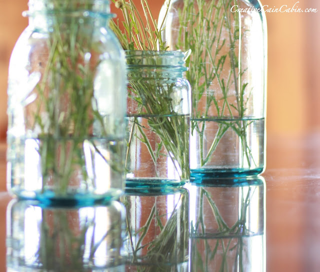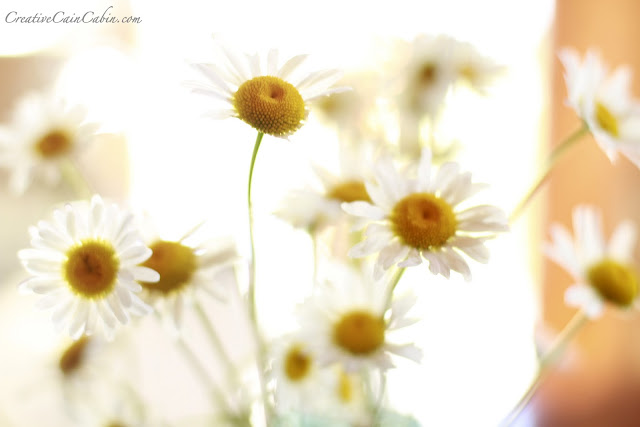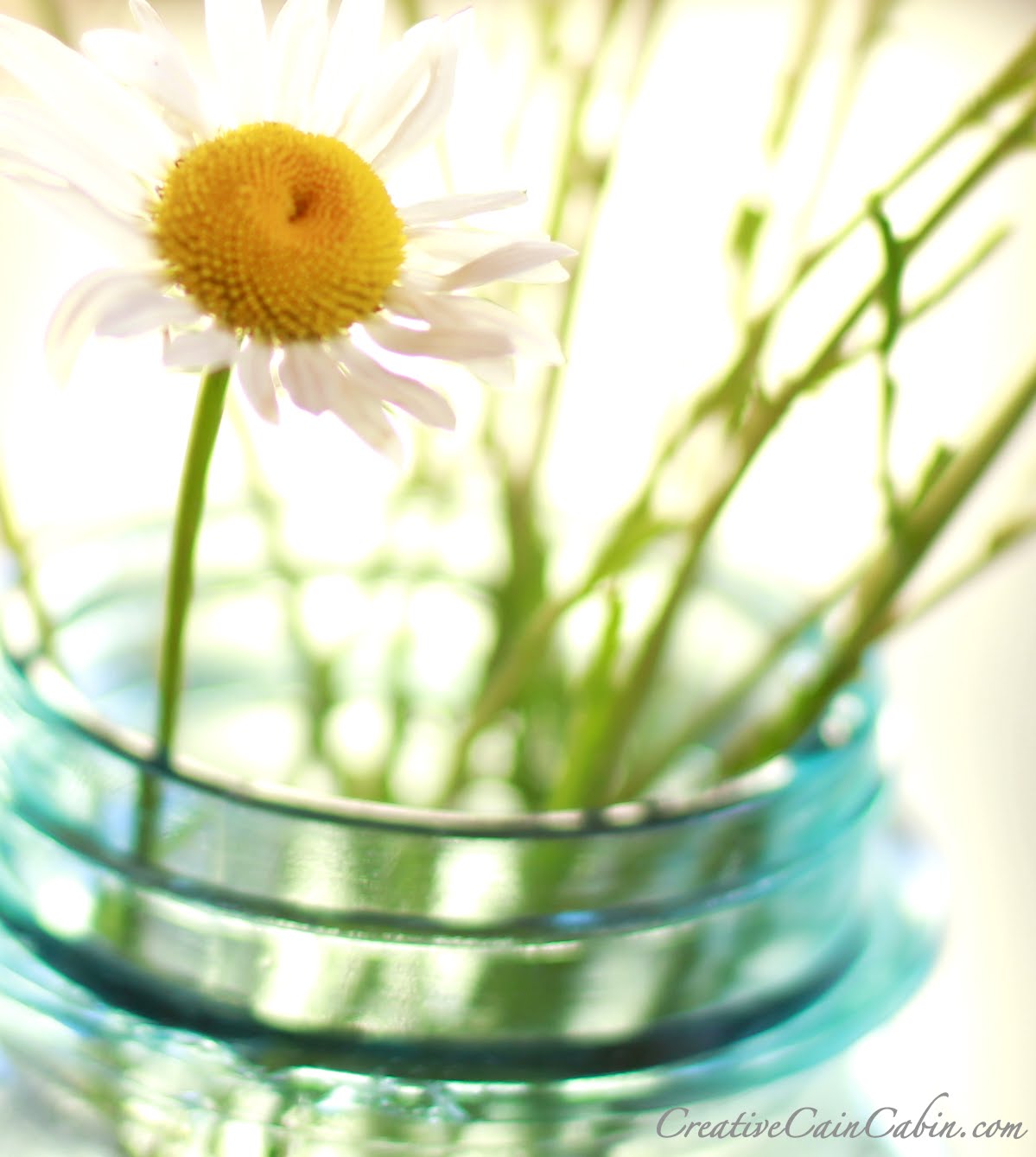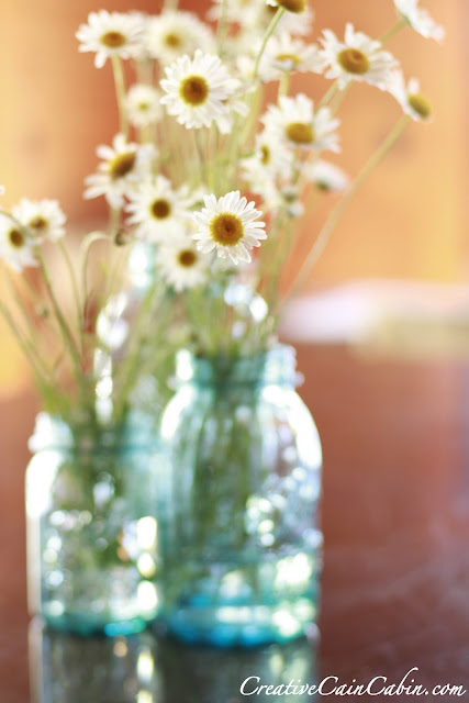 Not as pretty as yours Dawn. I do prefer fresh cut garden flowers to store bought any day. I love the daisies in the blue mason jars, so pretty!