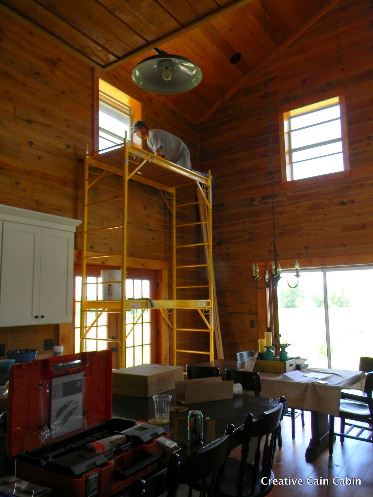 Apparently, Hubby and one of our employees decided to re-chink the inside of our log home while I was out couponing.